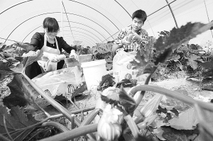 近日,商水县练集镇耿楼村现代农业示范园的西葫芦喜获丰收,村民加班加点抢收。商水县大力发展设施农业,采用“公司+基地+农户”的产业经营模式带动农户致富增收。 记者 岳建辉 通讯员 刘飞 闫志凯 摄