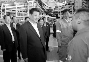 在中铁工程装备集团有限公司盾构总装车间,习近平通过模型了解盾构机整体构造和工作原理,然后登上一座85米长的盾构机装配平台,察看了装配情况。他向现场科技人员和职工问好,对他们攻克科研难题、突破盾构机系统集成技术壁垒的自主创新给予肯定。习近平指出,装备制造业是一个国家制造业的脊梁,目前我国装备制造业还有许多短板,要加大投入、加强研发、加快发展,努力占领世界制高点、掌控技术话语权,使我国成为现代装备制造业大国。一个地方、一个企业,要突破发展瓶颈、解决深层次矛盾和问题,根本出路在于创新,关键要靠科技力量。要加快构建以企业为主体、市场为导向、产学研相结合的技术创新体系,加强创新人才队伍建设,搭建创新服务平台,推动科技和经济紧密结合,努力实现优势领域、共性技术、关键技术的重大突破,推动中国制造向中国创造转变、中国速度向中国质量转变、中国产品向中国品牌转变。