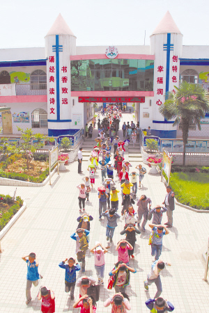 5月12日,河南省温县西关小学的学生在进行防震疏散演练。当日是我国第六个“防灾减灾日”,全国各地中小学开展应急疏散、防灾减灾知识教育活动,提高师生防灾减灾意识和应急避险、逃生自救的能力。今年我国“防灾减灾日”主题是“城镇化与减灾”。