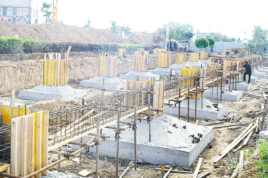 昨日上午,在周口市赛艇皮划艇训练基地、周口市龙舟文化展示馆、周口市水上运动龙舟船库工地上,工人正在紧张施工。连日来,我市各有关部门积极行动,为成功举办首届中华龙舟赛奠定了扎实基础。(记者 沈湛 摄)