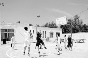 5月13日,在项城市贾岭镇文化站广场,村民代表队正在进行篮球比赛。 当日,项城市贾岭镇举办第二届农民运动会。篮球、拔河、跳绳、羽毛球等比赛项目,吸引了300余名村民前来参加。(记者 金月全 摄)