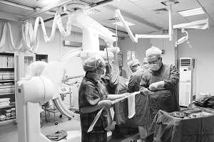 “接下来我们要进行造影术。”冉华中接着介绍,现在他们开展最成熟的手术是造影术和支架手术,造影术是诊断术,是把造影导管插入心血管,注入液态状的造影剂,“这样,X光机穿不透造影剂,心血管就能非常明显地显现出来。血管哪里堵塞、哪里狭窄,一目了然。根据反映出的血管图像,我们再决定是否下支架。”