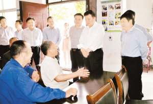 图为市委书记徐光就信访稳定工作在项城市南顿镇高洼行政村调研。(记者 王映摄)