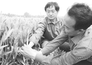 5月16日上午,在鹿邑县生铁冢乡黄台行政村任庄村小麦优质品种观摩会上,来自附近的种粮大户现场听取小麦专家讲解小麦管理技术,小麦专家手把手为农民讲解小麦的管理方法,力争今年的小麦丰产丰收。