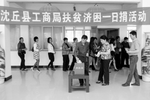 图为沈丘县工商局在进行“扶贫济困一日捐”活动。