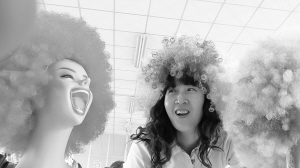 5月24日,消费者在山东即发集团试戴球迷假发。