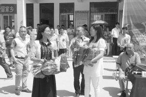 5月23日上午,郑州郸城商会会长张贵亮、秘书长梁金光一行来到东风乡张关庙小学,为该校学生每人捐献冬夏两套服装、图书两百多套,赠送著名书法家书画作品数幅,价值20多万元。30多位书画家现场为村民、教师挥毫泼墨。在此之前,商会副会长张本平已为学校铺设水泥路200多米,解决了学生出行难的问题。