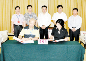 刘继标向廖燕纯颁发了“周口市人民政府经济顾问”聘书。廖燕纯代表广州玩具和礼品行业协会与我市签订了战略合作框架协议。