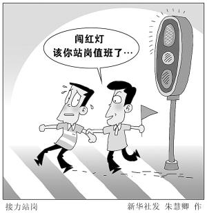 据了解,这种“接力站岗”的新措于5月底在武汉市汉阳区人流量大的路段开始试点。一些行人表示,与罚款相比,“接力站岗”的方式让人更易接受。当地城管部门的统计也称,措施实行一周以来,闯红灯违规行人较此前下降五成。