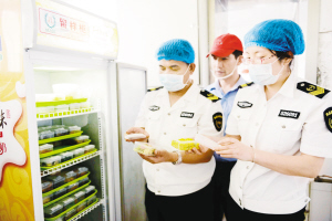 6月4日,山东省青岛市黄岛区食品药品监督管理局的执法人员来到高考考点青岛开发区第一中学食堂,对食堂餐具、食品加工、食材以及蔬菜农药残留等进行现场查看和检测,以确保考生高考期间的饮食安全。
