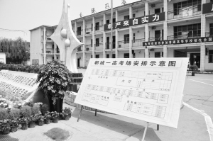 昨日,郸城一高校园内,高考考场分布图已摆在醒目位置,考场周围拉起了警戒线。2014高考在即,我市各考点已准备就绪迎接高考的到来。