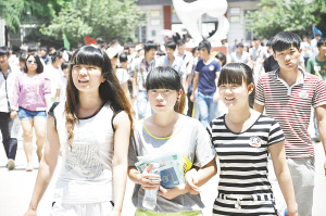 6月8日下午5时,随着考场铃声响起,2014年全国普通高校招生考试结束。图为周口考生轻松步出考场。(记者 王映 摄)