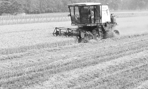 5月30日,一台大型联合收割机在沈丘县北城办事处高产示范田收割小麦。连日来,该县组织大型机械趁天抢收,全县100万亩小麦已经收割完毕。(记者 韦伟 通讯员 肖飞 摄)