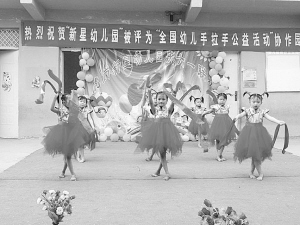 郸城县虎岗乡新星幼儿园注重素质教育,根据孩子的兴趣爱好培养特长,让他们的课余生活过得丰富多彩。图为孩子们自编自演节目庆祝“六一”儿童节。
