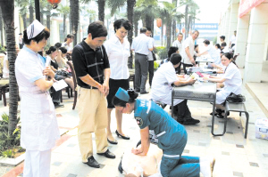 眼下,医务科正在全院范围内进行心肺复苏术培训,要求每个科室至少选派一人参加培训,涵盖临床、医技、行政、后勤、保安、保洁等所有科室。师资力量相当强大,10名培训师由参加省、市级急救技术比武队员、各重症医学科优秀人员组成。“我们还准备面向社会办班,免费教市民心肺复苏术,这是一项非常实用的急救技术,在国外,这样的培训都是面向民间的。”毛国璋说。