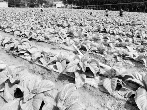 商水县平店乡积极调整产业结构,鼓励农民大力发展烟业种植,使很多农户依靠烟叶种植走上了致富路。图为该乡文寨村农民正在田间管理烟苗。(赵永昌 摄)