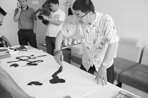 近日,来自周总理故乡江苏淮安的国家一级美术师、中国书法家协会会员庄辉先生专程到鹿邑拜谒老子,汲取老子文化,并把所思所想所感抒发于笔端。(记者 杜少华 摄)