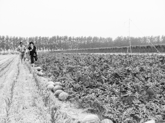 6月16日,朱集乡马集村村民在采摘丰收的西瓜。该乡因地制宜,积极加快农业结构调整,在马楼、马集行政村积极发展特色作物种植,种植西瓜、山药、药材等经济作物,确保农业增产、增效和农民增收。(记者 侯俊豫 通讯员 朝阳 摄)