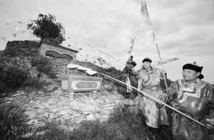 祭敖包为草原祈福 6月22日,几名蒙古族群众在祭敖包。当日,内蒙古乌拉盖管理区在贺斯格乌拉牧场举行固腊卜赛汗敖包祭祀活动。周边牧民带着牛奶、奶豆腐等祭品从四面八方赶到敖包进行祭祀,祈福草原风调雨顺,牧民幸福安康。新华社记者 任军川 摄