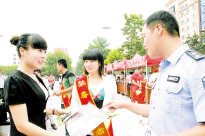 昨日,周口市公安局“6·26”国际禁毒日大型禁毒宣传活动在市区五一广场举行。市公安局犯罪侦查支队禁毒大队、周口市疾病预防控制中心、周口市药品不良反映监测中心等15家单位参与了宣传活动。图为禁毒大队民警和工作人员向群众散发禁毒宣传单、禁毒资料,讲解禁毒知识等。 (任君箫 摄)