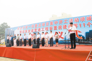 项城市委常委、常务副市长崔世岭主持开工仪式,并介绍了此次开工的11个项目情况。此次集中开工的11个重点项目为:迎宾大道贯通工程暨安置房建设项目、河南龙运皮革有限公司建设项目、乐普药业新建粉针车间建设项目、河南康达制药有限公司年产2000吨原料药建设项目、河南项城市富华制革有限公司皮革深加工建设项目、产业集聚区配套服务设施建设项目、老铁路线生态慢生活圈建设项目、项城市行政服务中心建设项目、城市基础设施建设项目、平安大道建设项目及南环路东通建设项目。项目总投资32.66亿元,年内计划投资17.76亿元。