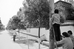 昨日,纸店镇卢寨村村民正在清理村里街道上的“牛皮藓”小广告。日前,沈丘县开展了“千人驻村大走访”、“清洁家园·美丽沈丘”等活动,受到广大农民拥护。大家纷纷投身到活动之中,用自己的双手扮靓自己的家园。