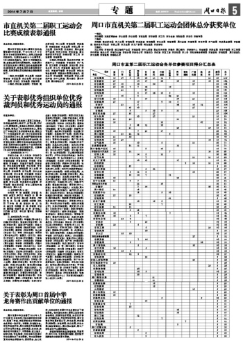 周口市直机关第二届职工运动会团体总分获奖单位