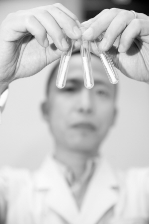 7月7日,在中科院遗传与发育生物学研究所,再生医学实验室戴建武研究员展示研制的生物材料。中科院遗传发育所戴建武研究团队首次创新性建立了胶原生物材料的生长因子缓释方法,并建立规模化制备平台,制备了多种具有胶原结合能力的生长因子骨修复材料。其中,用于骨缺损填充的生物骨有望明年投入生产。生长因子是一类具有调节细胞生长、分化等特性的细胞因子,通常与支架材料结合形成智能生物材料,通过生长因子的缓释促进损伤修复。 新华社记者 金立旺 摄