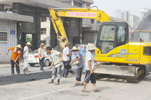 近年来,受车流量增多、雨水冲刷等因素影响,项城市区多条道路出现了坑槽、开裂、变形、破损等现象。近期,项城市城管局通过调查摸底,科学规划,对“窟窿路”、“问题路”进行重新修整,为市民出行提供了方便。图为道路维修人员正在莲花大道东段修补路面。杨光林 朱宁宁 摄