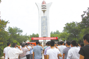 近日,一批预备党员在革命先烈纪念碑前庄严宣誓加入中国共产党。在庆祝建党93周年之际,西华县直机关工委组织县直机关70多名预备党员在杜岗会师革命纪念碑前举行集体入党宣誓仪式。(记者 张猛 通讯员 杨中敏 摄)