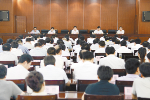 市委书记徐光主持会议并讲话。省委第七督导组副组长许军及其他督导组成员到会指导。市长刘继标、市人大常委会主任李洪民、市政协主席穆仁先在主席台就坐。