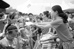 近日,“捐一元 献爱心 送营养”爱心活动在成都启动,百余名爱心志愿者通过报纸、爱心画作、个性足球等物品的义卖,筹集善款用于我国贫困山区孩子的加餐,改善他们的营养状况。该项目由中国扶贫基金会和百胜餐饮集团中国事业部于2008年共同发起,迄今已累计提供了2500万份营养加餐,云南、贵州、四川等省区部分贫困山区的12万余人次的小学生因此而受益。 新华社记者 刘海摄