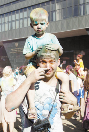 7月13日,一场别开生面的色彩节活动在莫斯科举行,人们抛洒彩色粉末,为盛夏增添一抹亮色。新华社记者 郑清斌 摄