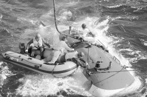 “蛟龙”号开展今年试验性应用航次首次下潜作业 7月16日,蛙人在为“蛟龙”号载人潜水器解除吊缆。当日,“蛟龙”号载人潜水器开展2014至2015年试验性应用航次第一次下潜作业,主要目的是检验潜水器在不同深度的水下作业技术状态。 新华社记者 罗沙 摄