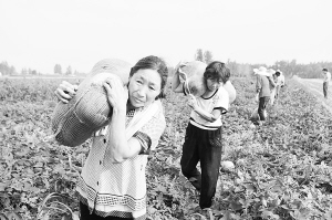 昨日,商水县袁老乡刘楼村村民在天奇农民种植专业合作社采摘优质无公害西瓜。该县大力扶持发展新型农业经营主体,发展专业合作、股份合作等多种形式的农民合作社479家,促进了农业增效、农民增收。(岳建辉 刘飞 摄)