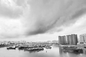 台风“威马逊”来袭 海南启动III级应急响应 大批轮船和渔船在海口新港码头避风(7月17日摄)。今年第9号台风“威马逊”将于18日凌晨到中午在海南陵水到广东阳江一带沿海登陆,登陆强度可达14到15级,海南省已启动III级应急响应。目前,在海南周边海域作业的渔船正陆续回港躲避台风“威马逊”,琼州海峡已全线停航。新华社记者 郭程 摄