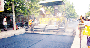 右图:近两年,西华县在大力发展经济的同时,倾力改善民生。图为7月上旬,该县城市管理中心正在组织工人全面整修城区受损路面,方便群众出行。(记者 张猛 摄)