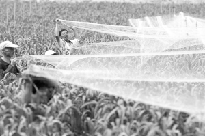 眼下正值谷物出穗期,为防止鸟类啄食粮食,造成降质减产,山东招远市蚕庄镇林家村盛润种植专业合作社的500余亩有机谷子全部被覆盖上了“防鸟网”。图为该合作社社员正在为谷地盖上“防鸟网”。新华社发