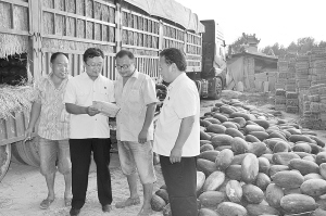 7月17日,太康县法院法官巡回办案之余为瓜农提供法律服务。为深入开展党的群众路线教育实践活动,该院充分发挥审判职能,通过开展各种便民利民活动,为群众提供方便快捷的法律服务,受到群众好评。