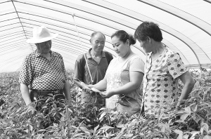 鹿邑县张店镇闫庄行政村大学生村官王元元六年如一日,积极鼓励引导农民流转土地,发展高效农业,取得了明显的社会效益和经济效益,被当地群众称为“一心为民致富的好村官”。图为王元元在该村蔬菜大棚内,给群众讲解辣椒病虫害和管理技术。