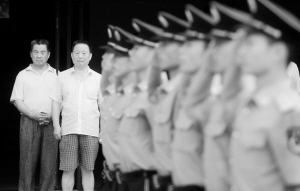 老兵归来 7月31日,两位老兵在武警浙江省总队的一处训练基地内观看队列训练。当日,在八一建军节前夕,杭州市朝晖街道应家桥社区的“爱心公益车队”载着辖区内的20名老兵开始寻访他们当年的军营足迹,老兵们将参观当代军营的新面貌,聆听军营新故事,畅谈军营新感受,并在军营里回忆自己的军旅生涯和过去的峥嵘岁月。 新华社发