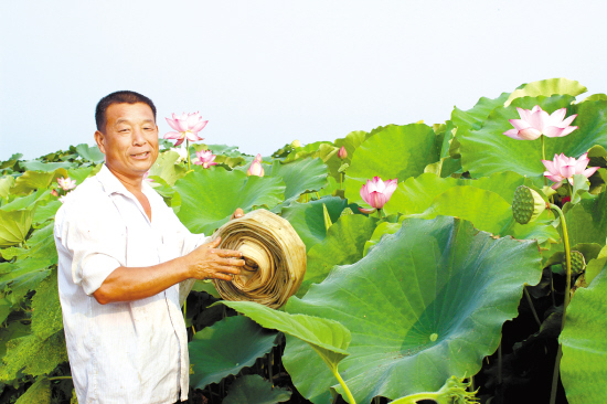 昨日,在项城市花园办事处荷花种植基地,农民张成军正在管理荷花。今年,张成军共种植4亩观赏荷花,预计年收入10万多元。(张永久 摄)