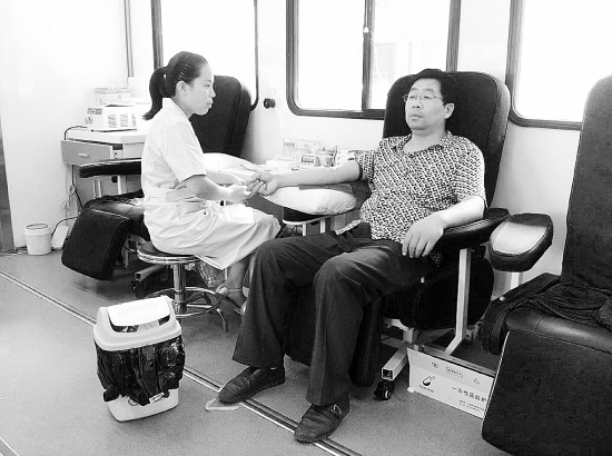 近日,郸城县卫生局组织县人民医院、第二人民医院、妇幼保健院等单位人员开展无偿献血,让爱心相互传递,让更多的生命得到救治。图为县卫生局一科室主任积极参加献血。(记者 卢好亮 通讯员 丁宇涛 摄)