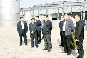 市委书记徐光,市长刘继标,市委常委、常务副市长刘保仓,市委常委、副市长刘国连,市政协副主席程新华在沈丘县委书记皇甫立新的陪同下,深入河南新华雪啤酒有限公司建设工地调研。 郭力铭 摄