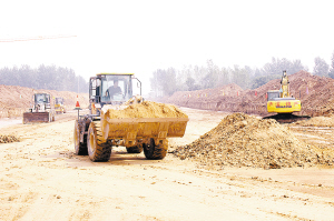 8月5日中午,项城市迎宾大道贯通工程工地上的工人,正冒着高温紧张施工。据悉,该工程是项城市城市建设中的“天字号”工程,对于拉大城市建设主框架、带动其他重点项目建设具有十分重要的意义。该工程总投资3.5亿元,目前已全线施工。(张永久 摄)