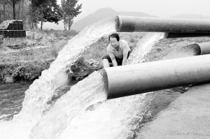河南全力抗旱 在河南省汝阳县上店镇西庄村的北汝河岸,一名水利工作人员在看护着灌溉农田的抽水机泵(8月5日摄)。近日,河南中西部重点受旱地区旱情持续加重。据统计,伏旱以来,河南省累计投入抗旱资金13.2亿元,高峰时日最高出动劳力122万人,开动机电井45万眼,投入泵站869处,出动抗旱设备93.5万台套,累计抗旱灌溉7109万亩次,力争把干旱对农作物造成的损失减少到最低程度。 新华社发