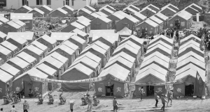 鲁甸县龙头山镇临时集中安置点的一排排搭建有序的帐篷。