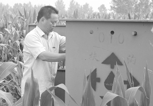 上图 扶沟县大力推进农业综合开发工程,积极开展田间工程建设,农业设备日臻完善。图为工作人员在韭园镇中农合作社示范建设区检修设备。
