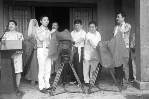 图1:鹿邑县委书记陈志伟等领导和嘉宾为电视剧开机揭镜。