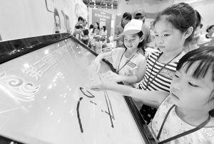 8月17日,小朋友在第三届厦门网络文化节成果展互动区体验。当日,“美丽厦门e缔造”第三届厦门网络文化节成果展暨闭幕式在厦门美术馆举行。本届网络文化节从今年4月正式启动,历时近4个月,共吸引100多万网民参与。 新华社发